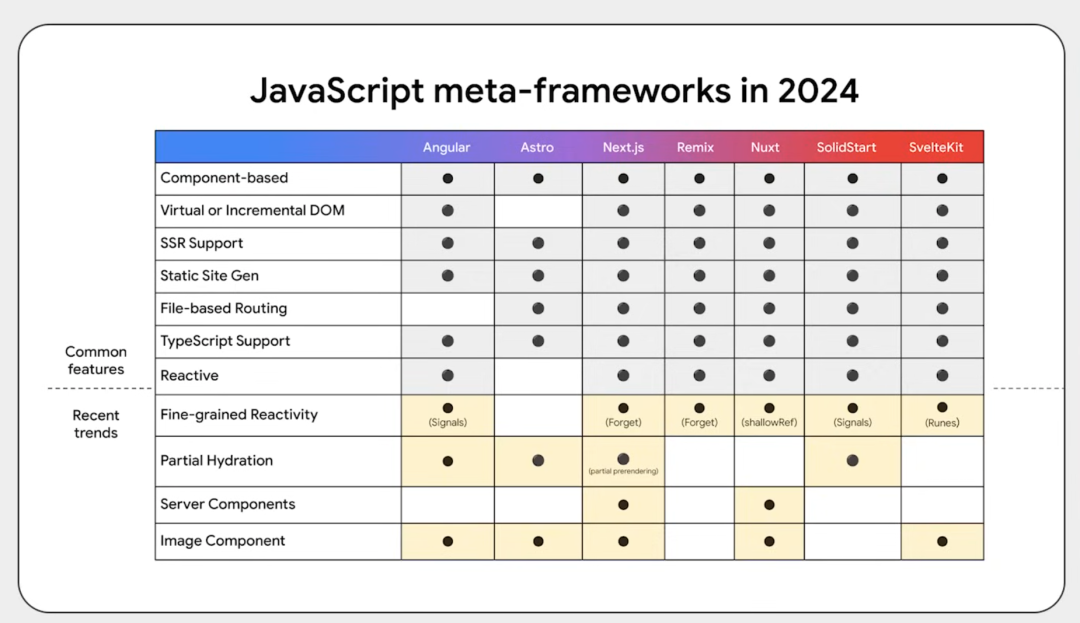 去一年,JavaScript 框架生态又发生了不小的变化,在今年的 Google I/O 开发者大会中,《Navigating the JavaScript framework ecosystem》 主题向我们整理和介绍了我们应该关注的重点内容。