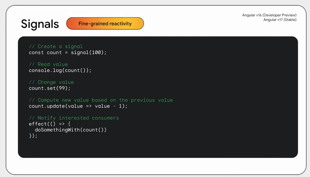 信号( Signals):信号是多个框架(包括现在的Angular)用于跟踪应用程序状态的一种新的方法。Angular Signals可以通过减少在变更检测期间需要进行的计算次数来改善运行时性能,包括交互到下一次绘制(INP)。