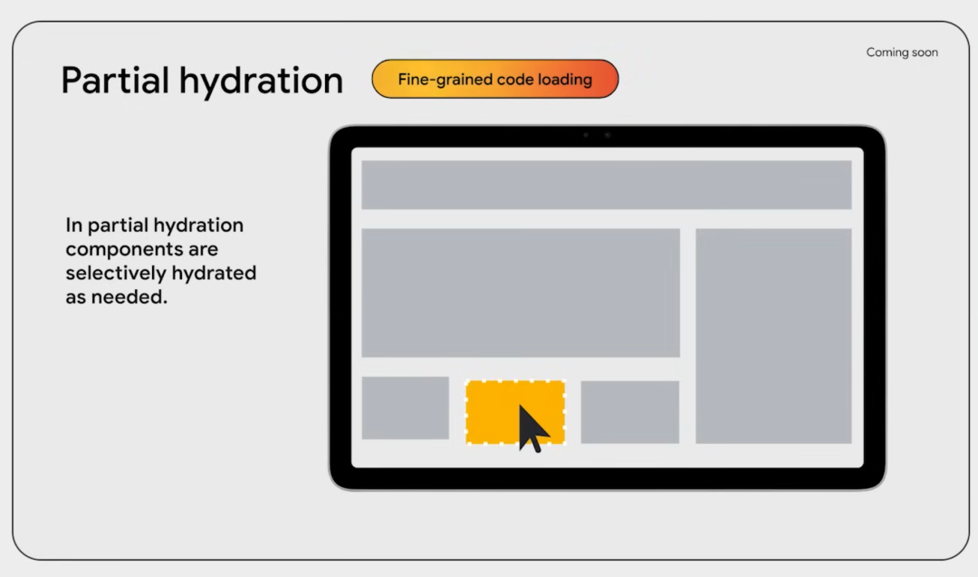 部分水合( Partial hydration):通过部分水合,默认情况下,在页面呈现时浏览器不加载页面的任何JavaScript。相反,随着用户与页面的交互,页面的特定部分会进行水合。