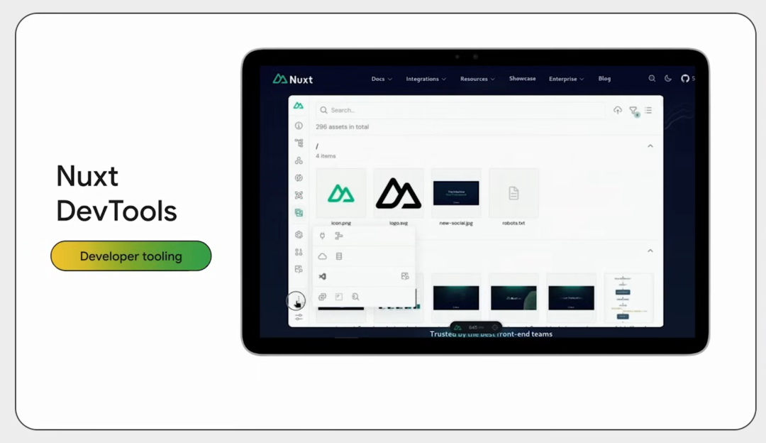 Nuxt 最近一直致力于通过其开发者工具进一步改善开发者体验。与一般的浏览器扩展不同,Nuxt Dev Tools 作为一个浮动面板出现在你的应用旁边的浏览器中,这使得它们能够提供非常详细和视觉上丰富的界面。除此之外,Nuxt Dev Tools 还支持社区模块,意味着使用类似 Vitest 或 Tailwind CSS 这样有针对 Nuxt Dev Tools UI 的工具时,这些 UI 将出现在 Nuxt Dev Tools 中。