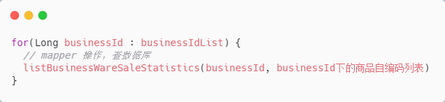 这个很容易想到,在代码层面循环业务机构列表,每个业务机构查一次数据库,伪代码如下:
