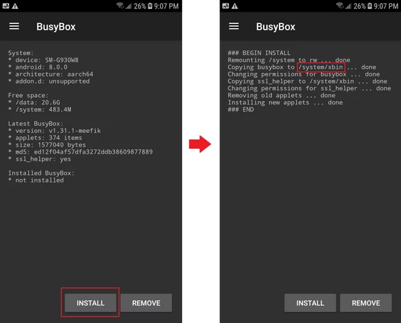 1-2. 安装完毕后,打开 BusyBox。安装的过程中,记录下 BusyBox 的安装位置。在下图中,BusyBox 安装到了”/system/xbin”。稍后我们会用到这个位置。