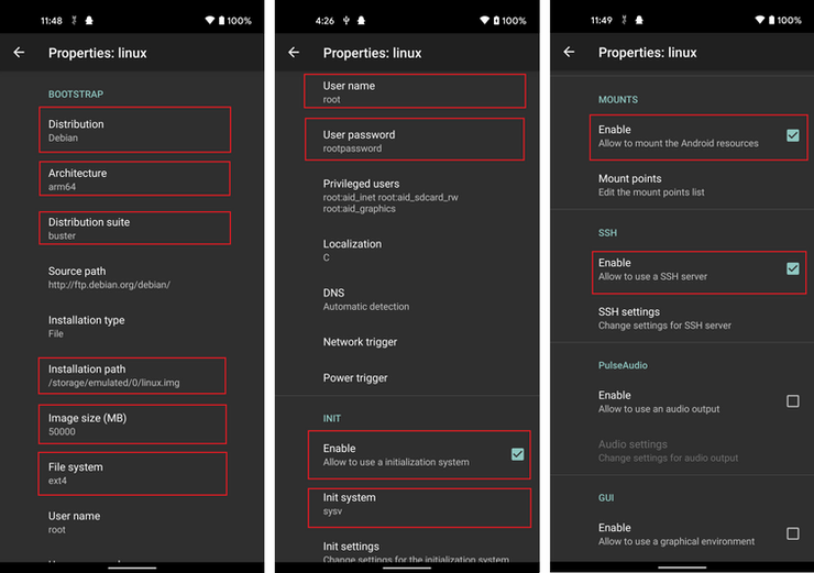 请记住,本教程采用了非常特殊的配置,,其中大部分是为了适应在 chroot 环境中,在 Android 上使用 Debian。