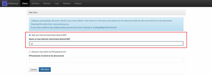 3-2. 点击 “Add new Internet client/client behind NAT”,并输入新客户端的名称: