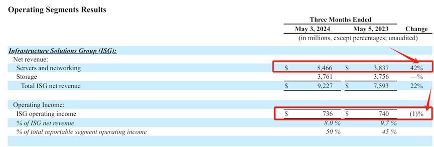 意味着整个ISG业务在本季度真正的变化是AI服务器新增了17亿美金。