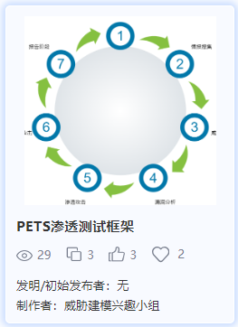 PETS渗透测试框架分为:前期交互、情报搜集、威胁建模、漏洞分析、渗透攻击、后渗透攻击、报告阶段。它的核心理念是通过建立起进行渗透测试所要求的基本准则基线定义一次真正的渗透测试过程,得到了安全业界的广泛认同。