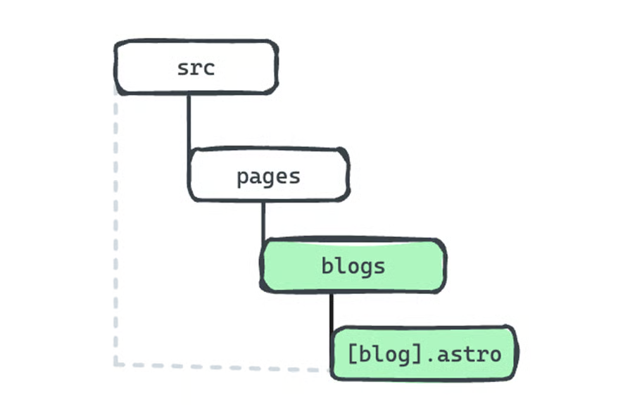 Astro 页面可以在文件名中指定动态路由参数,这将生成多个匹配的页面。例如,构建一个博客应用,其中每篇博客都有自己的路由,可以通过以下方式表示该页面: