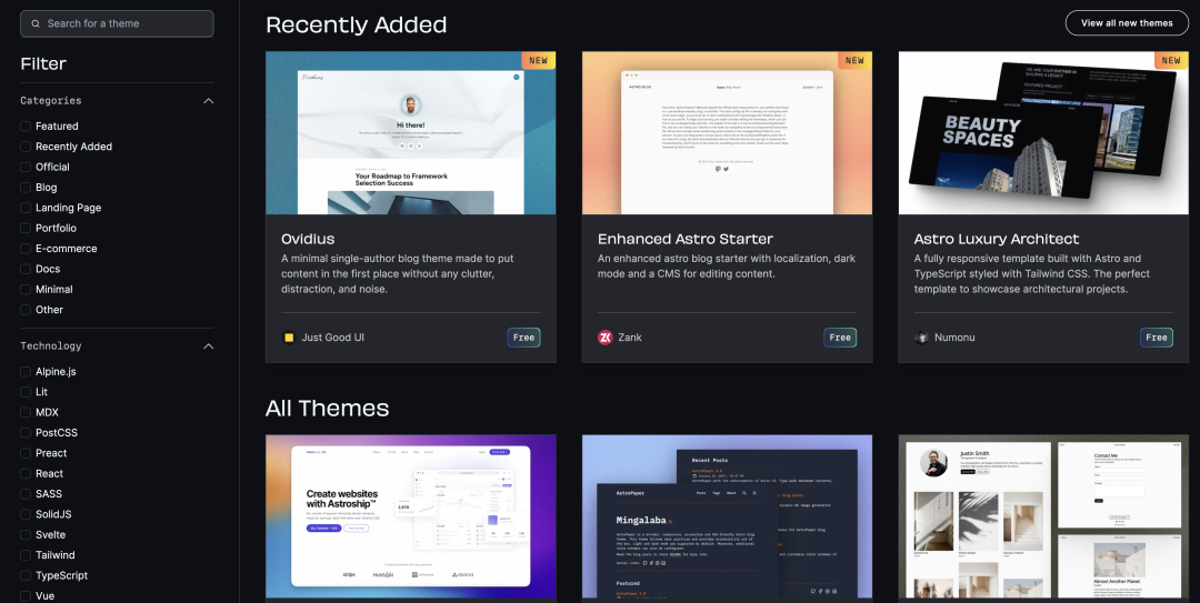 Astro 在过去几年中的增长很大程度上归功于它的易于采用和开发。Astro 通过提供多样化的模板,为工开发者快速启动项目并编写更少的代码提供了极大的便利。