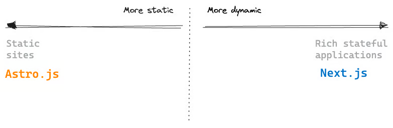 如果你的网站大部分是静态的并且性能是优先考虑的,可以考虑使用 Astro。如果正在构建一个功能丰富、有状态的应用,Next 可能是更好的选择。