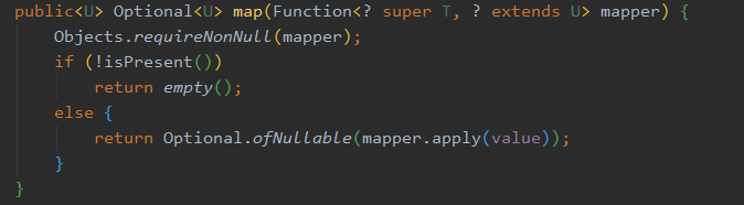 因此,不论你 Optional 里面到底有没有值,我 map 都能处理!如果你是空,我就返回空 Optional ,如果你有值,ok 我包裹成 Optional 返回,反正不论怎样,调用 map 的返回值都会是一个 Optional,而不是 null,所以执行时不会产生空指针的情况。