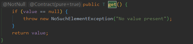 截个 orElseThrow 的实现,就是判断下 value ,如果是 null 就抛错。