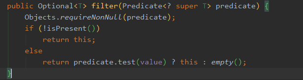 总结下来 Optional 主要是简化一系列判空操作,执行过程是一条龙走到底的,你有几个 filter 和 map 不论得到的值空不空,都是执行到底包括 orElse 的逻辑。