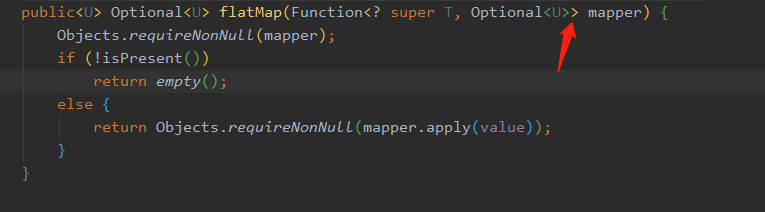 先判断 value 是否为空,如果是空的话说明真正要是值是空的,此时直接返回一个 empty(),还记得上面的 empty 方法吧?直接方式事先创建的空 Optional 。