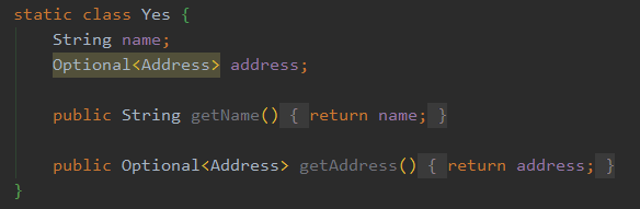 这里又得提一点了,关于 POJO 里面的属性是否应该被 Optional 包裹,或者说是否应该把 get 方法包裹成 Optional 返回,类似下面这样的代码。