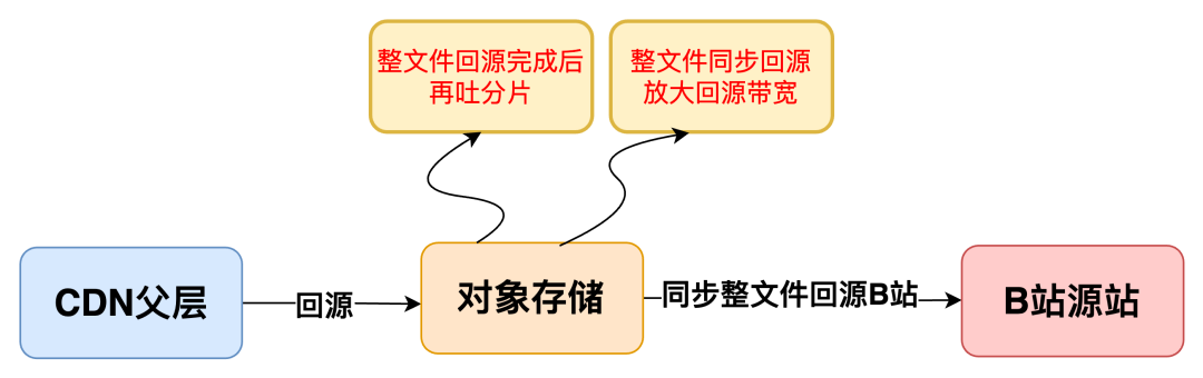 为了解决以上的问题,提升CDN厂商回源稳定性、保障源站安全,在出现问题时能快速定位并且及时止损,减少因为回源问题导致CDN质量受损的情况。在调研前期发现对接的各家商业CDN的回源策略发现主要存在以下两种常见的回源情况: 一种是用户分片请求后,要等待整文件回源完成之后再返回分片,这样容易引起用户的播放延迟增大 一种是分片回源时,对分片所属的整文件进行同步拉取,这会极大的放大回源带宽,给源站造成压力