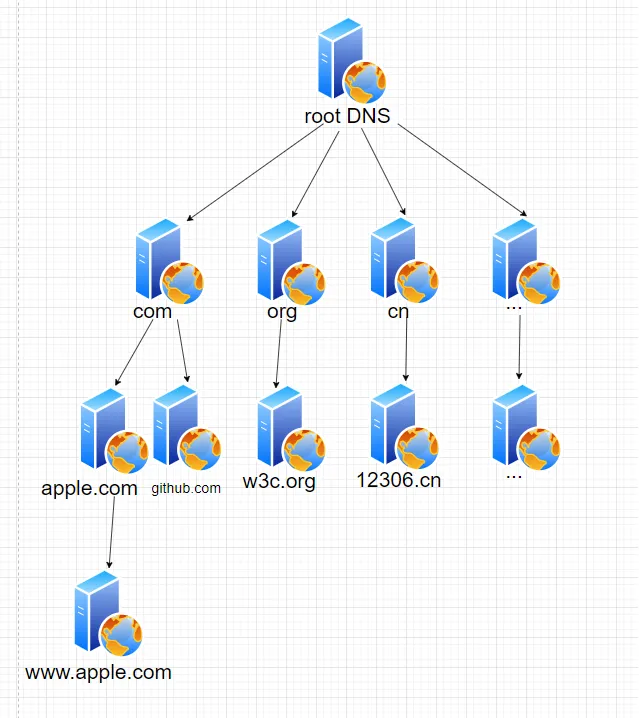 顶级域名服务器:管理其各自域下的权威域名服务器;例如,com 顶级域名服务器可以返回 apple.com 服务器的 IP 地址; -