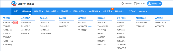 我在转换各种文档格式时经常使用这个工具。它不仅支持PDF文件与Word、Excel、PPT之间的转换,还支持CAD、CAJ、OFD、照片、电子书等之间的转换。
