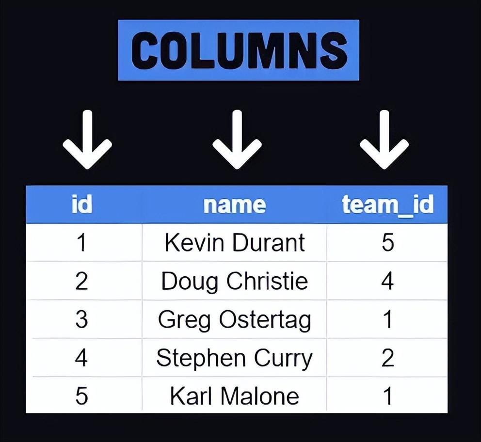 每行代表一个单独的记录或数据点,具有自己的唯一 ID(称为主键)。