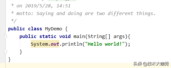 这里我们先写一个demo类,里面只有一个main方法,打印出最经典的“Hello world!”就可以了。