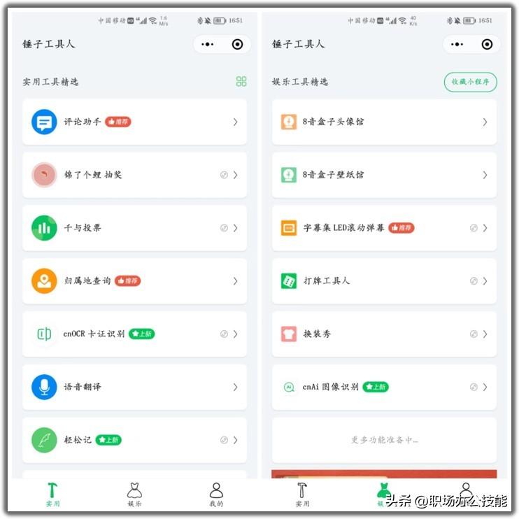 这是我最近使用频率最高的小程序,里面收集了很多实用的小工具,抽奖、投票、LED滚动字幕、查快递、语音翻译、ocr卡证识别等,便捷了生活方方面面。