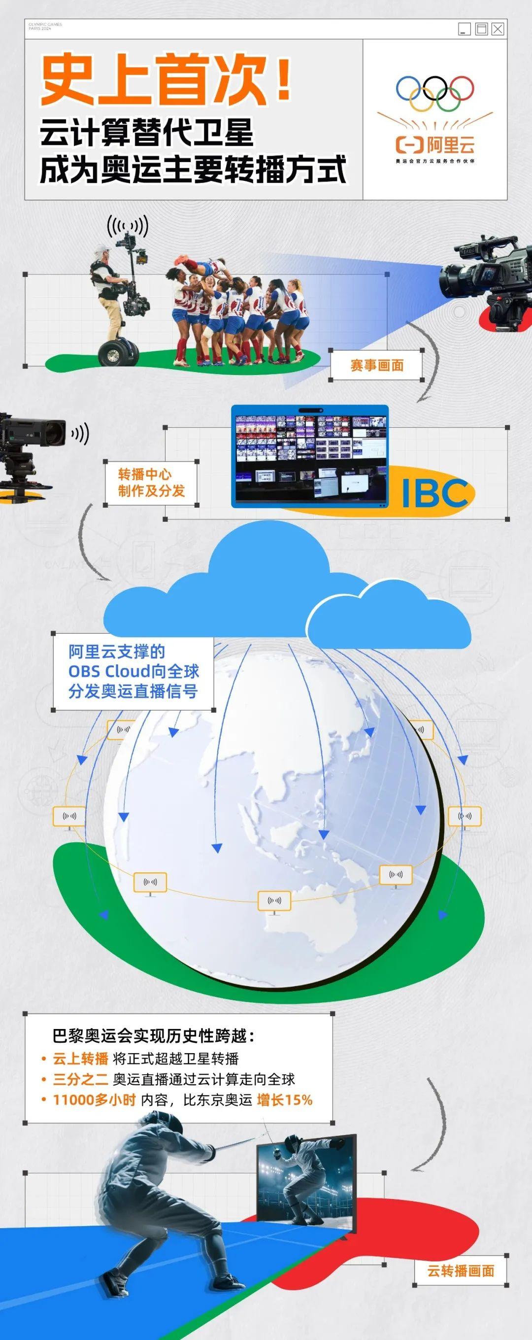 数字时代,云服务已成为奥运会等大型国际活动不可或缺的技术支撑。而作为全球领先的云服务品牌,历经几届迭代升级,在今年,巴黎奥运转播的云用量首次超越传统卫星转播,成为奥运的主要转播方式。预计11000小时的赛事直播画面将通过阿里云向全球分发。这是1964年东京奥运会开始卫星电视转播以来,又一次重大技术进步。