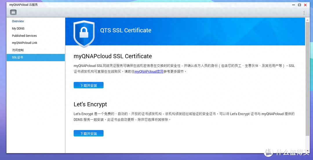 但是对于威联通的SSL证书,我必须见一次吐槽一次:它虽说提供了两种SSL证书的申请方式,但是国内能用的要花钱(myQNAPcloud SSL Certificate),不花钱的国内又不能用(Let’s Encrypt)。