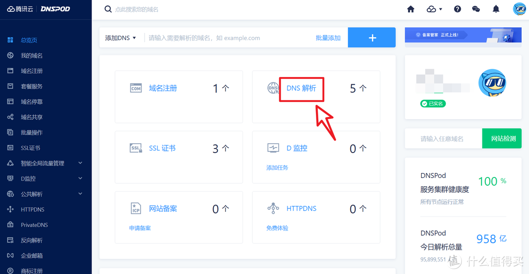 腾讯云DNSPOD官网平台:https://www.dnspod.cn/