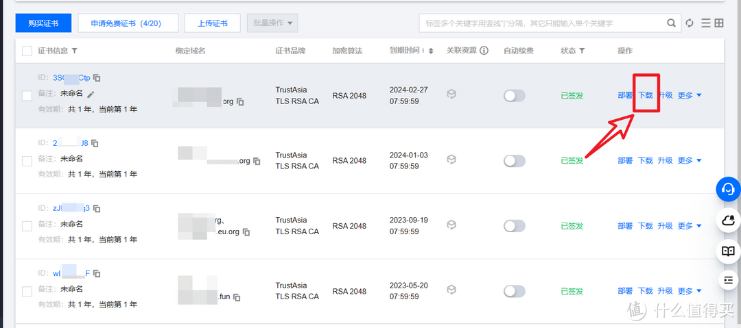 在我们操作的这个域名后面有个“下载”按钮,点击它!