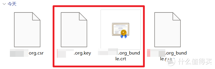 下载到本地其实是一个压缩包,我们直接解压就能得到4个文件,其中用到的其实就是上图中两个后缀分别为“.key”和”.crt”的文件。