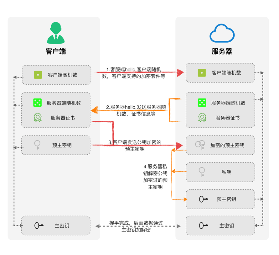 当浏览器尝试访问受 SSL 保护的网站时,浏览器和 Web 服务器将使用称为“SSL 握手”的过程建立 SSL 连接(见下图)。请注意,SSL 握手对用户不可见,并且会立即发生。
