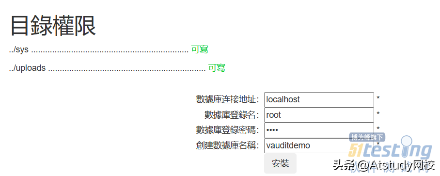 完成上述步骤之后,在浏览器中输入http://192.168.211.132:81/看到VAuditDemo安装界面: