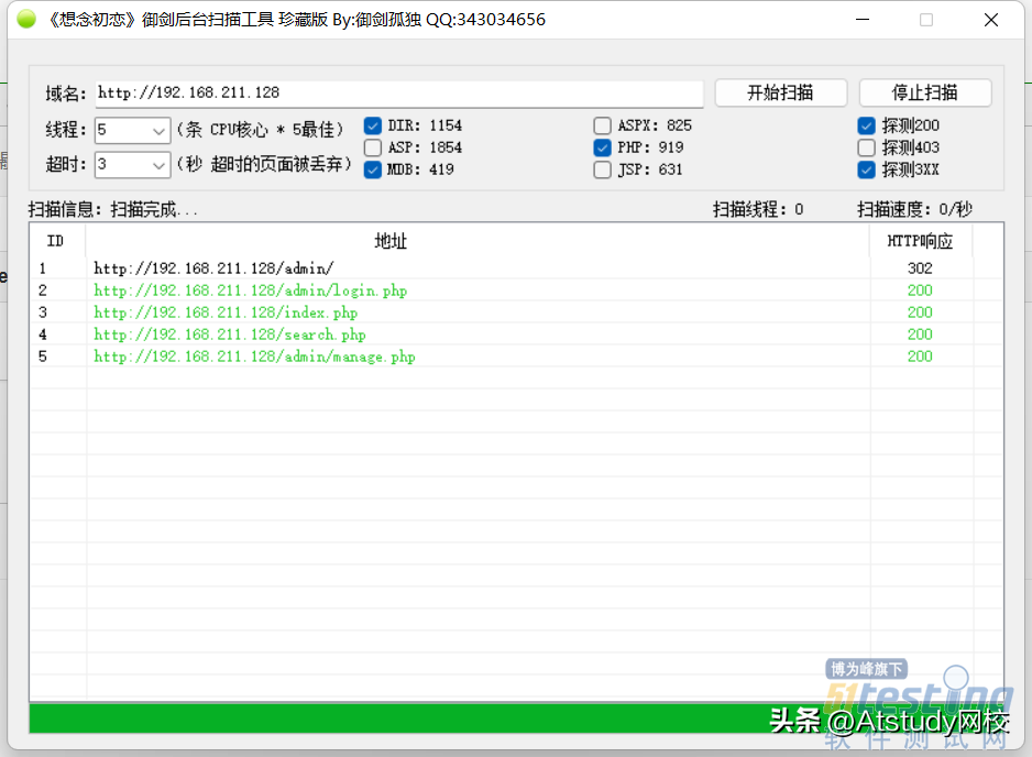 接下来使用御剑后台扫描工具,对系统进行扫描