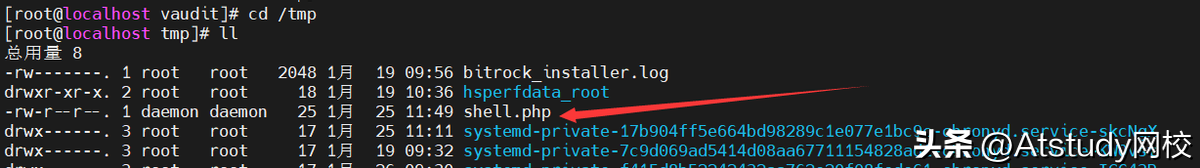 在被攻击的服务器上面的/tmp目录下面可以看到下面的结果: