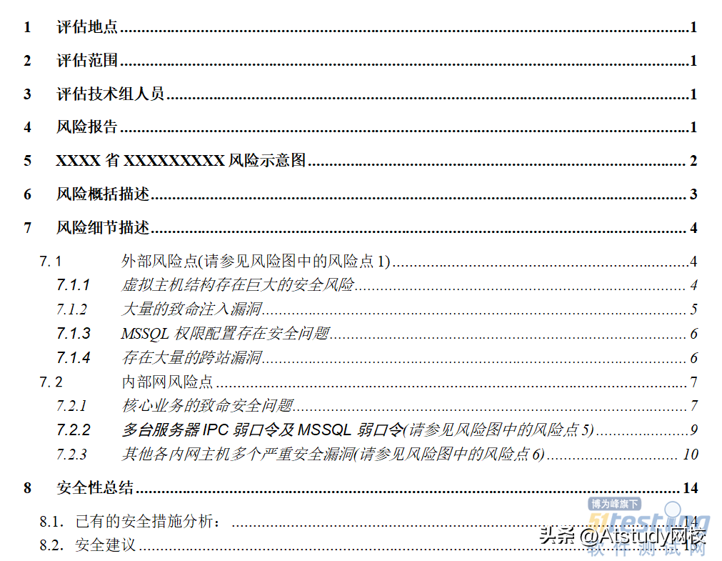 6、报告编写:将所有找到的安全漏洞汇总为一份渗透测试报告,提交给委托方,完成渗透任务。