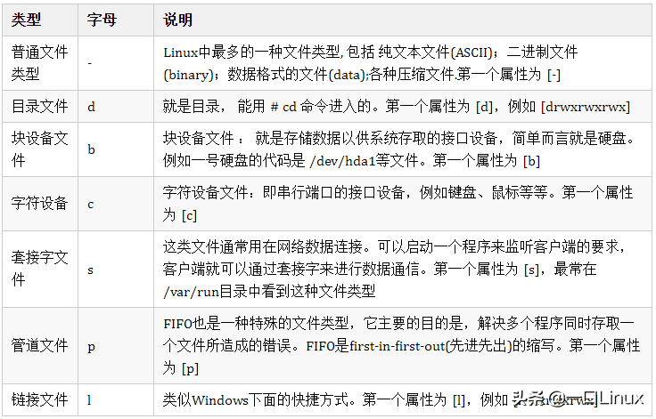 Linux文件属性一共7种: