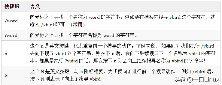 使用 /word 配合 n 及 N 是非常有帮助的!可以让你重复的找到一些你搜寻的关键词!