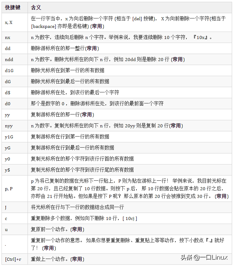 这个 u 与 [Ctrl]+r 是很常用的指令!一个是复原,另一个则是重做一次~ 利用这两个功能按键,你的编辑,嘿嘿!很快乐的啦!